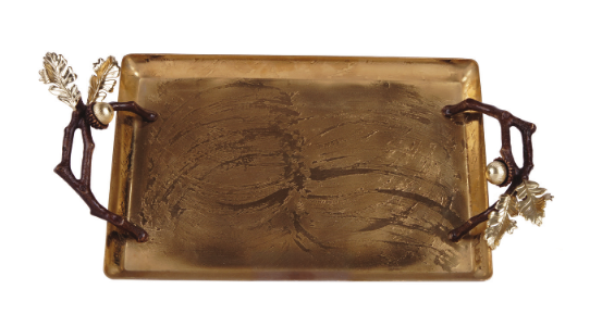 سینی بلوط فلزی مستطیل کوچک طلایی/قهوه ای