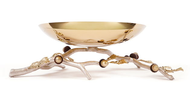 جنس جزییات (شاخه و گل و بلوط ) از فلز برنج و جنس ظرف از استیل , چوب, سنگ, شیشه آبگز که تماما دست ساز میباشد.