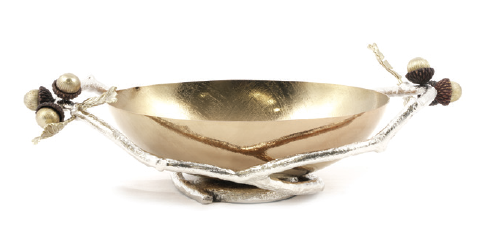 جنس جزییات (شاخه و گل و بلوط ) از فلز برنج و جنس ظرف از استیل , چوب, سنگ, شیشه آبگز که تماما دست ساز میباشد.