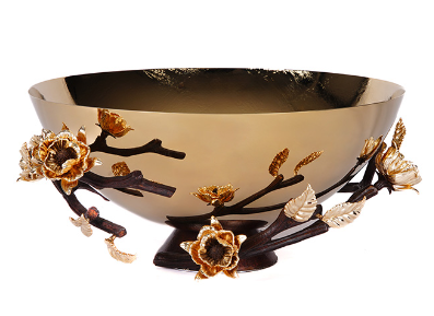 جنس جزییات (شاخه و گل) از فلز برنج و جنس ظرف از فلز برنج, چوب, سنگ, شیشه آبگز که تماما دست ساز میباشد.